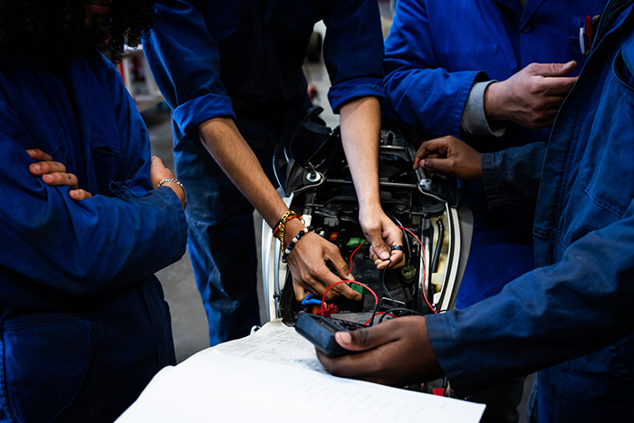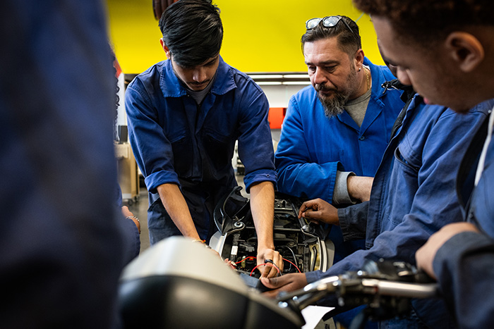 A l'initiative de Mme David, proviseure, cette série d’images produites au sein des classes de terminale de l’année 2024/2025, valorise les gestes techniques des élèves des filières professionnelles MELEC, MVA Option Motocycles, Ferronnier d’art, Réalisation de produits mécaniques et CIEL.